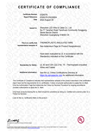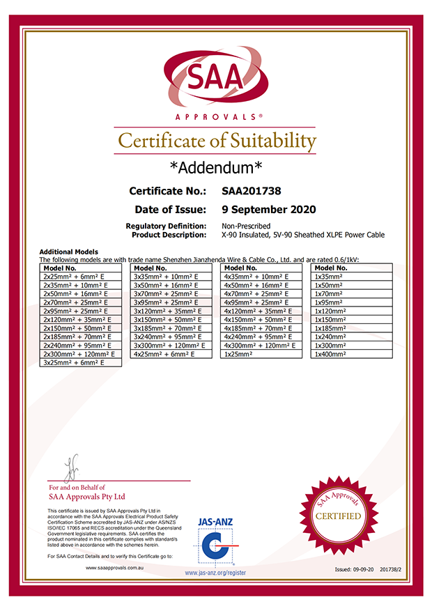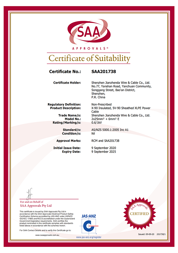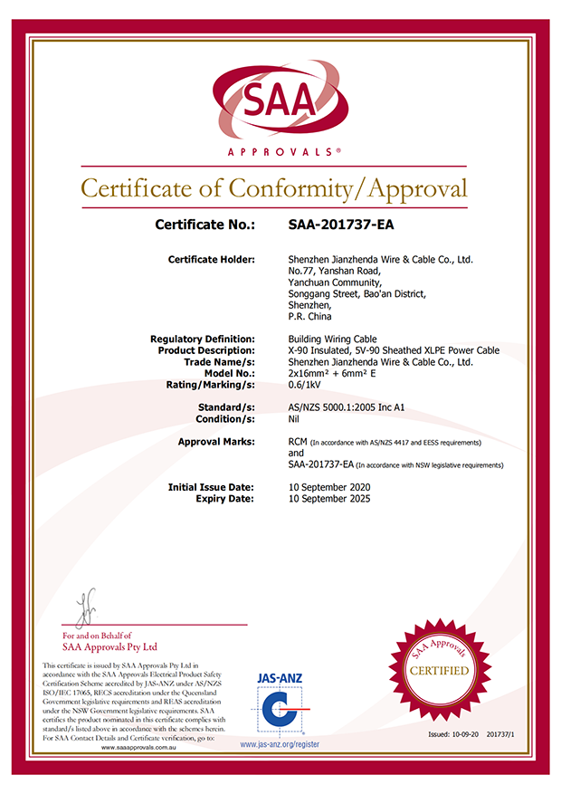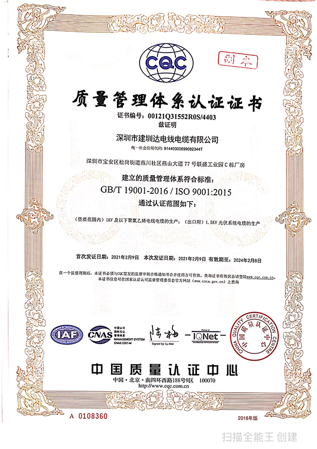 深圳建圳達電線電纜有限公司,成立于2000年,是一家電線電纜制造商,我們通過了世界各地不同市場的多數(shù)認(rèn)證,如:CCC、RoHS、CB、SAA、TUV、VDE、PSE、BPS、UL、CSA。我們根據(jù)定制產(chǎn)品不斷更新新的認(rèn)證。經(jīng)過數(shù)十年的發(fā)展,我們與來自世界各地的客戶建立了長期的合作關(guān)系。我們曾經(jīng)是菲律賓機場,,柬埔寨的電力站,美國的醫(yī)院,工廠,埃塞俄比亞的水電站項目。我們是一家值得信賴的電線供應(yīng)商。